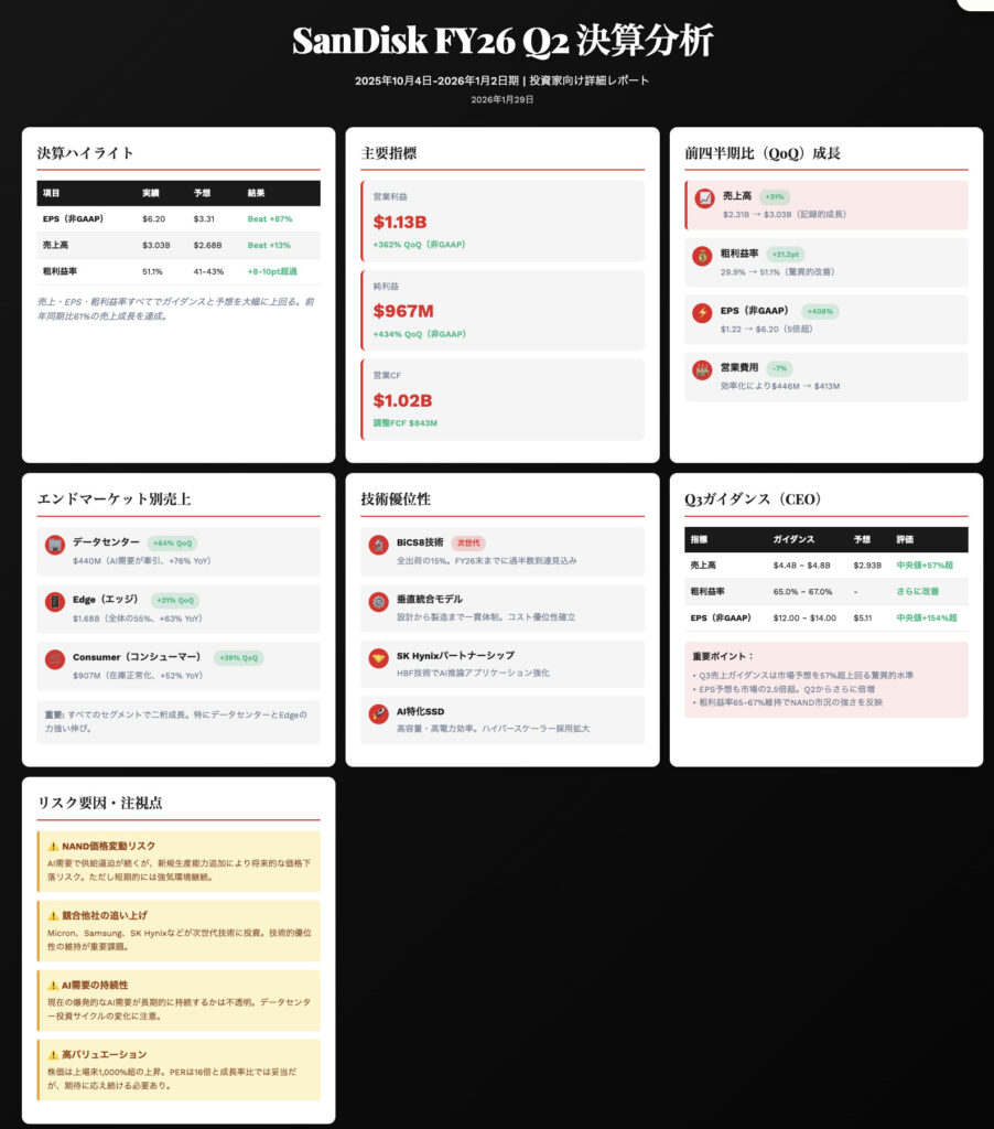 SanDisk FY26 Q2 決算コールまとめ